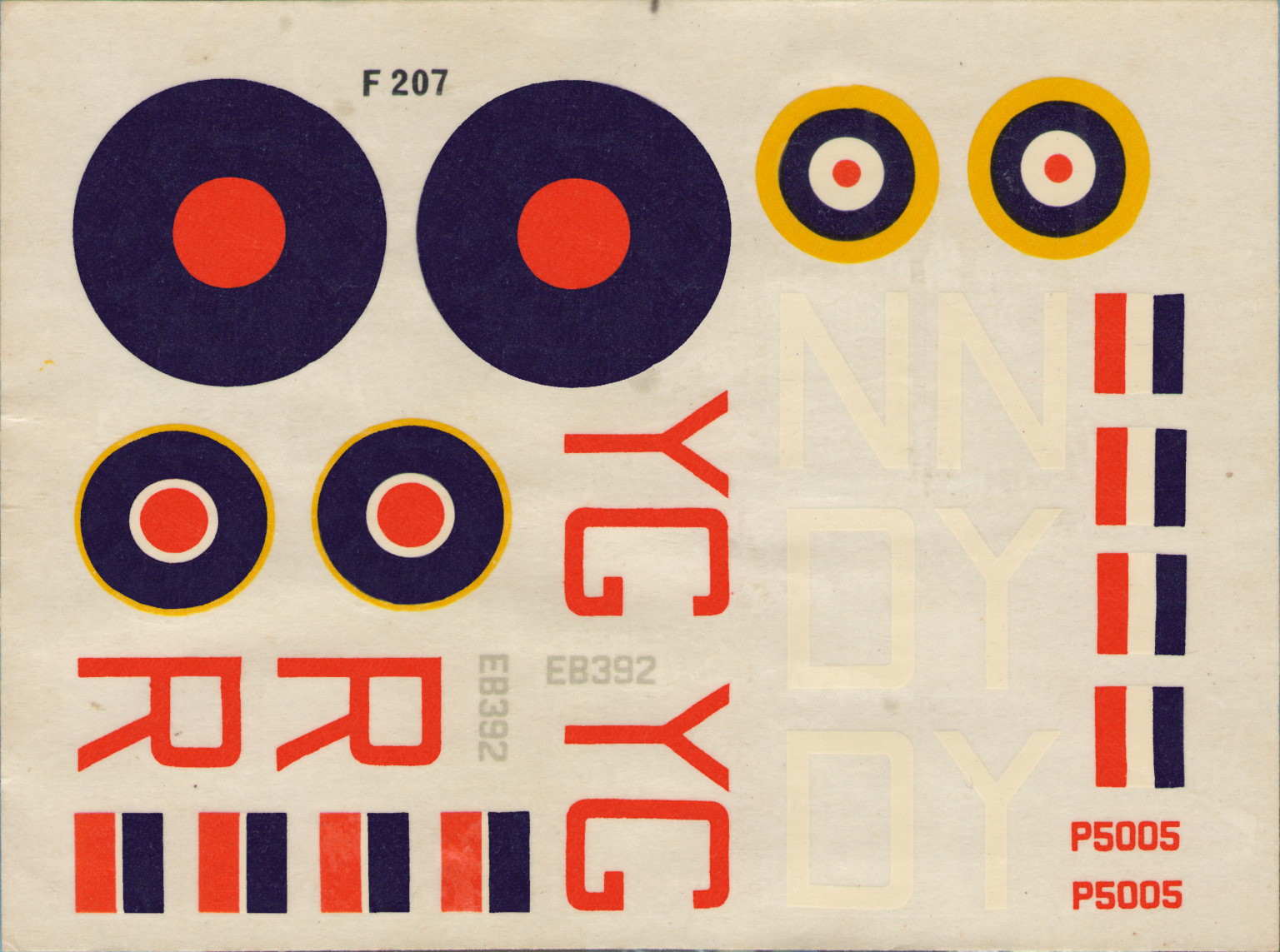Декали, которые также очень хороши, предназначены для Mk. V в маркировке (тогдашнего) Flying Officer Г. Леонарда Чешира, на котором он немедленно получил D.S.O. в ноябре 1940 года, а альтернативная маркировка предназначены для Mk.VII A.S.V., оснащенного радаром, из 502 Squadron Coastal Command - антенный массив радара A.S.V. предоставляется в качестве альтернативных дополнительных деталей.