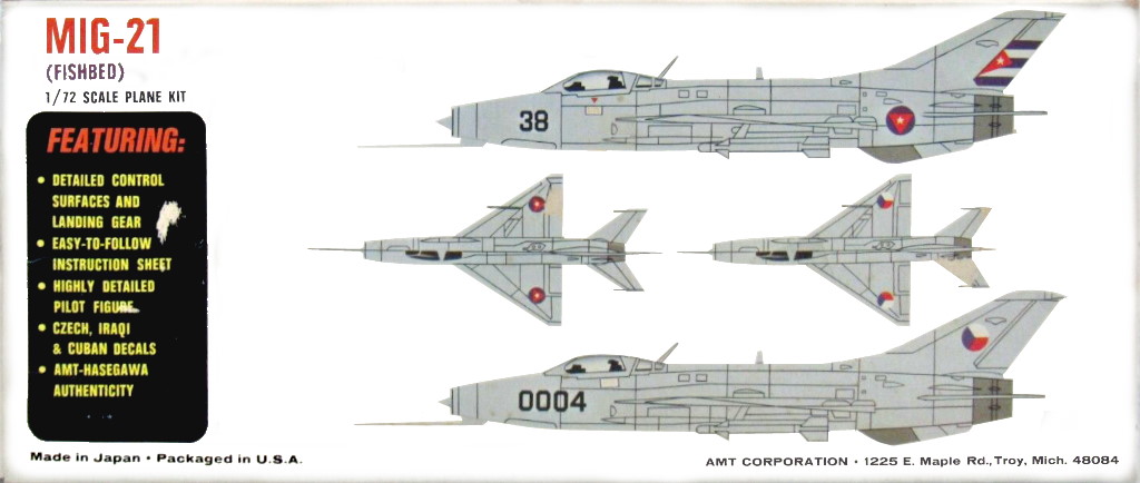 К сегодняшнему дню десятки модельных фирм выпустили сотни переизданий своих моделей МиГ-21, но в 1966-м году модель Hasegawa MiG-21 была самой первой. В апреле 1966г поступил в продажу Фантом, а МиГ-21 - в мае. Продажи Airfix MiG-21 стартовали только в январе 1968 года. К этому времени МиГ-21 уже продемонстрировал свои выдающиеся боевые качества в воздушных боях во Вьетнаме в обстановке подавляющего воздушного превосходства со стороны американской авиации, проявил себя в небе Кубы во время Карибского кризиса 1962г и, несмотря на то, что успехи истребителя тщательно замалчивались средствами массовой информации Запада, стал знаменит на стороне противников СССР. Более того, ко времени выпуска японской модели самолёт поступил на вооружение Индии и капиталистической страны - Финляндии.Тем не менее, в том числе из-за обстановки секретности в самом СССР и требования к странам-покупателям самолёта о базировании его настрого охраняемых базах, о самолёте в то время было известно немного фактических данных. Поэтому модель конструкторы Hasegawa создавали по немногочисленным фотографиям, используя собственное воображение для реконструкции его вида.